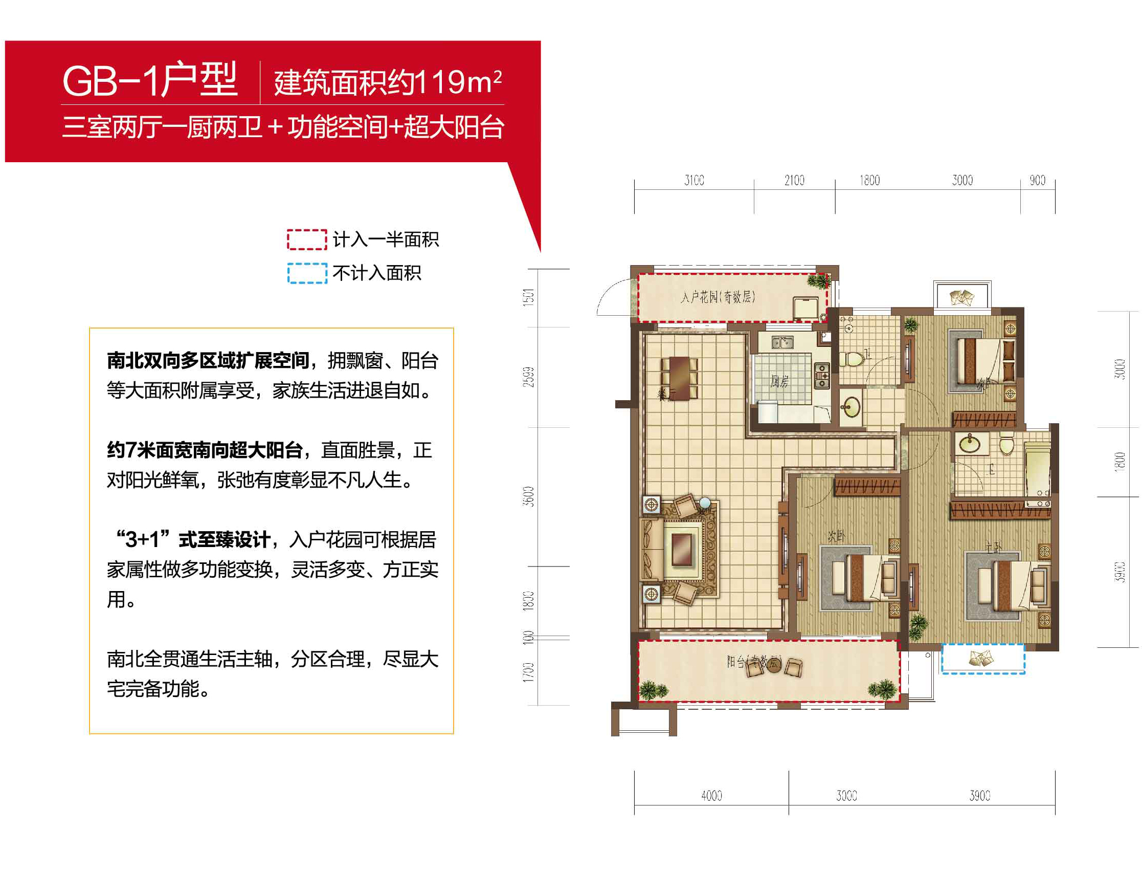 南北双向多区域扩展空间,拥飘窗、阳台等大面积附属享受,家族生活进退自如